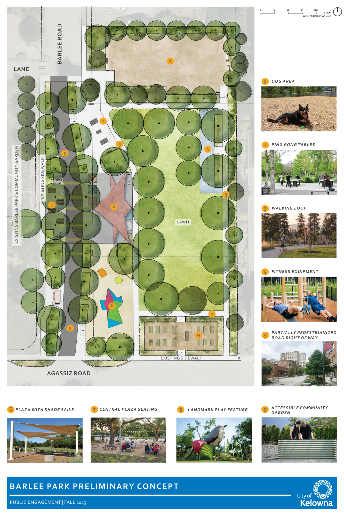 Barlee Park is a 0.37-hectare site that currently hosts a small playground, community garden and open lawn area. The existing park, located at 1890-1898 Barlee Road, will be expanded to the east side of Barlee Road.